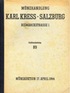 Antike, Ausland, Gold, Geistlichkeit, weltliche Herren, Städte, Medaillen, Neuzeit, Literatur. Versteigerung 17. April 1944 und folgende Tage. Salzburg;, Münzenhandlung Karl Kress, 1944. Lex.-8°. 96 S., 6 Tafeln mit zahlreichen sw-Abbildungen, broschiert (neuer Rücken; teilweise leicht stockfleckig; lichtrandig; sonst altersgemäss gut erhalten) (=Versteigerungskatalog; 89) |