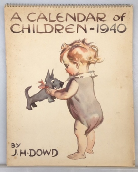 A Calendar of Children - 1940, by J. H. Dowd, (IN ENGLISCHER SPRACHE), 1. Auflage, ohne Ort und Verlag, 1940. 12 Seiten 25x32, weiße illustrierte OBrosch in Spiralbindung. Gutes Exemplar mit minimalen Flecken auf dem Deckblatt.