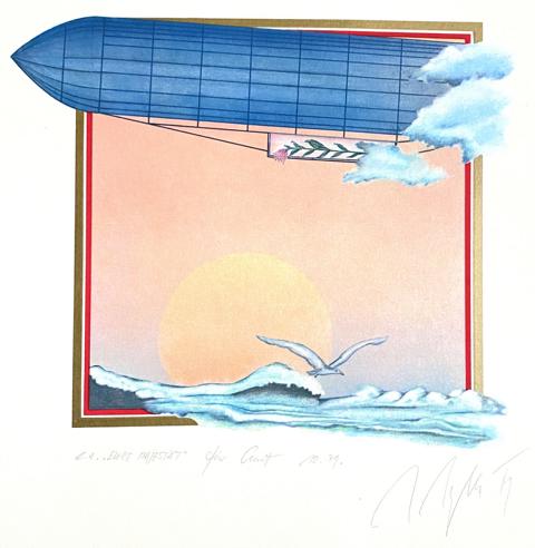 " Euere Majestät " für Curt. Original Farbserigraphie. 1979 _. Blattgröße 50 x 40 cm. Darstellungsgröße ca 22 x 22 cm. e.a. Exemplar. - Unter der Darstellung von Künstler in Bleistift betitelt, signiert und datiert. - Die erste nachgewiesene Ausstellung von Janek Sylla war der 1. Mai-Salon 74, Zerstörung der Umwelt im Haus am Lützowplatz in Berlin im Jahr 1974, die letzte Ausstellung war der 1. Mai 1945. 1. Mai 1975. Dreißig Jahre Frieden im Haus am Lützowplatz in Berlin im Jahr 1975. Janek Sylla wird ausschließlich in Deutschland ausgestellt. Eine bemerkenswerte Ausstellung war 1. Mai 1945. 1. Mai 1975. Dreißig Jahre Frieden im Haus am Lützowplatz in Berlin im Jahr 1975. Janek Sylla wurde zusammen mit Brigitte Hein und Bettina von Arnim ausgestellt. - Guter Zustand. OB.