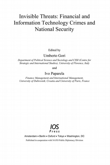 Invisible Threats: Financial and Information Technology Crimes and National Security, Volume 10 NATO Security through Science Series: Human and Societal Dynamics. IOS Press, 2006. 17 x 24 cm. 160 pages. Hardcover. Versand aus Deutschland / We dispatch from Germany via Air Mail. Einband bestoßen, daher Mängelexemplar gestempelt, sonst sehr guter Zustand. Imperfect copy due to slightly bumped cover, apart from this in very good condition. Stamped.